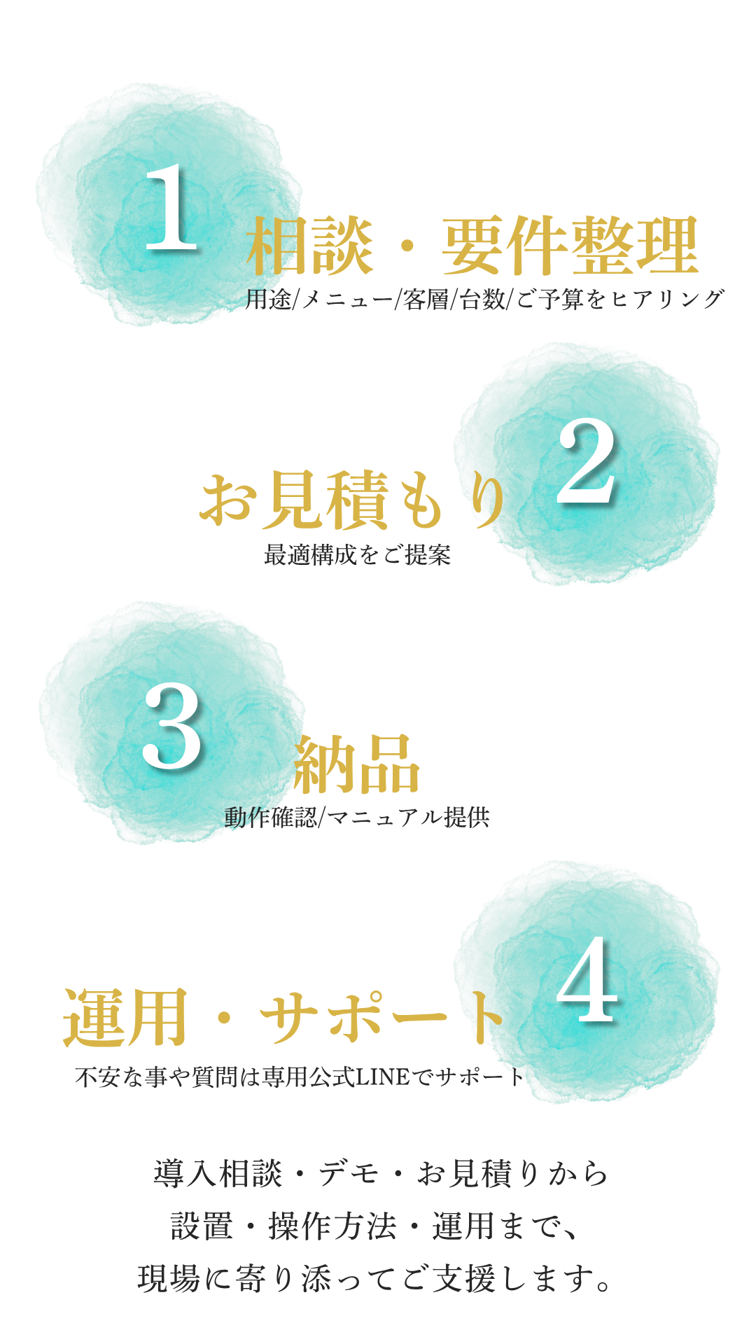A. フィルターやジェル等の消耗品は使用頻度・環境で異なりますが、メーカー推奨周期または稼働時間などの目安は購入検討時にお伝えいたします。